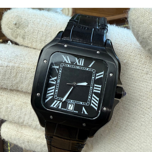 Santos Steel – Black Dial Leather Strap