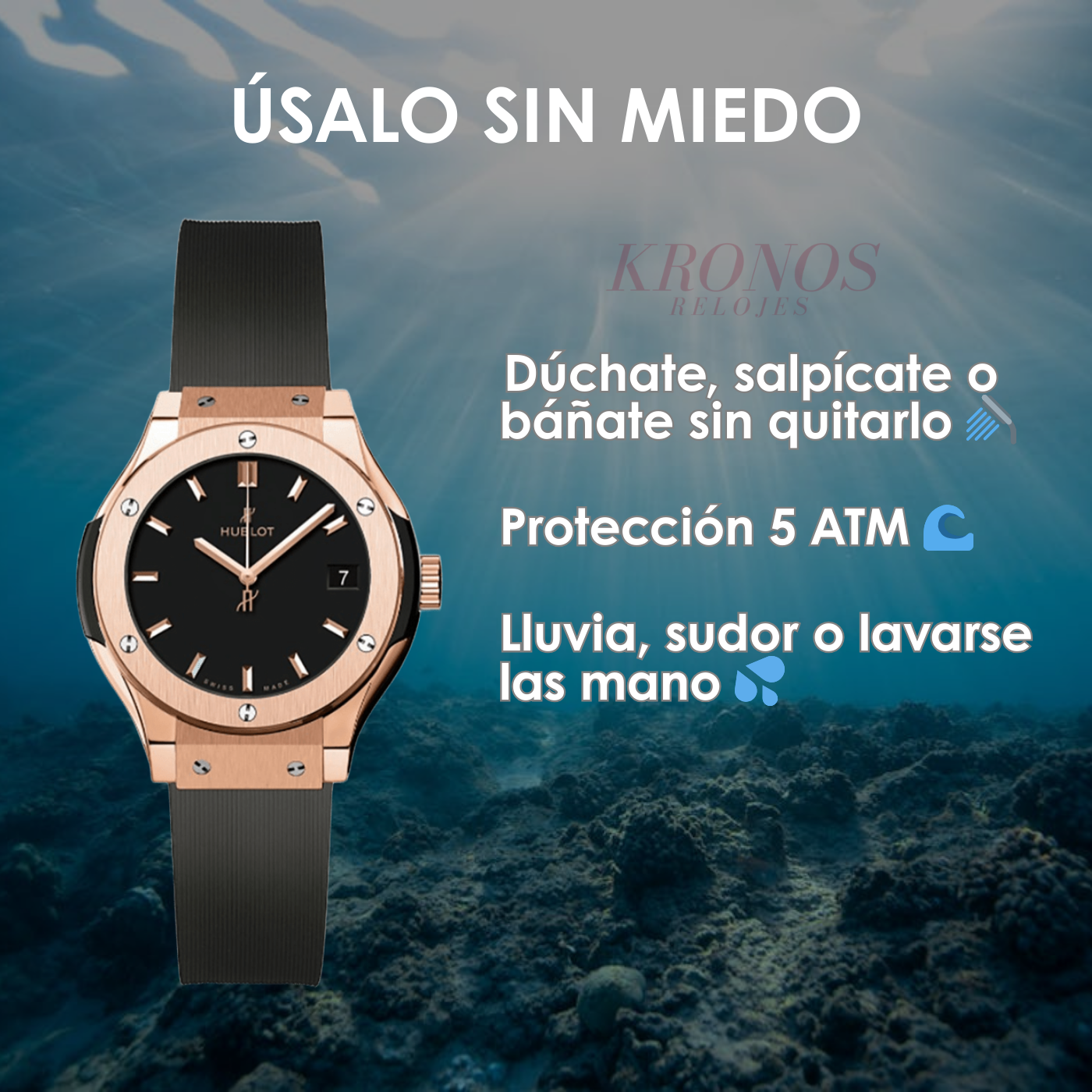 Classic Fusion King Gold – Black Dial Rubber Strap Hublot Type