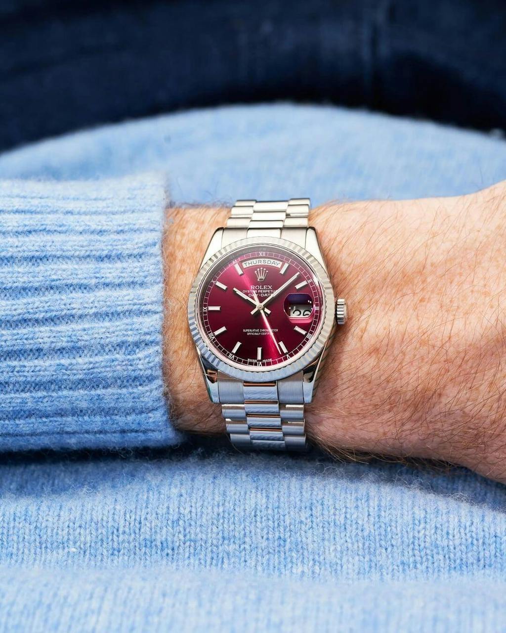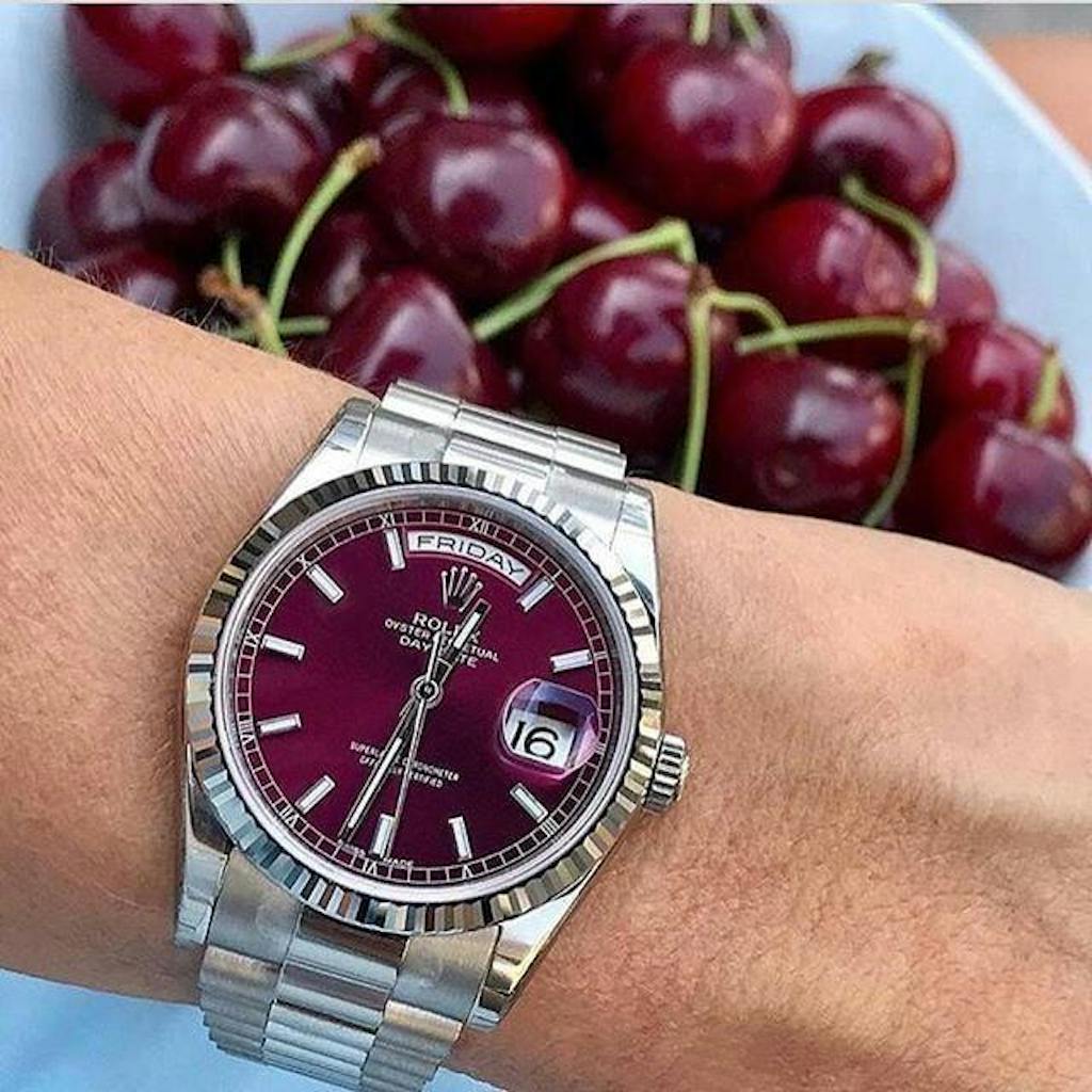 Day-Date Oystersteel – Cherry Dial President Type Rolex