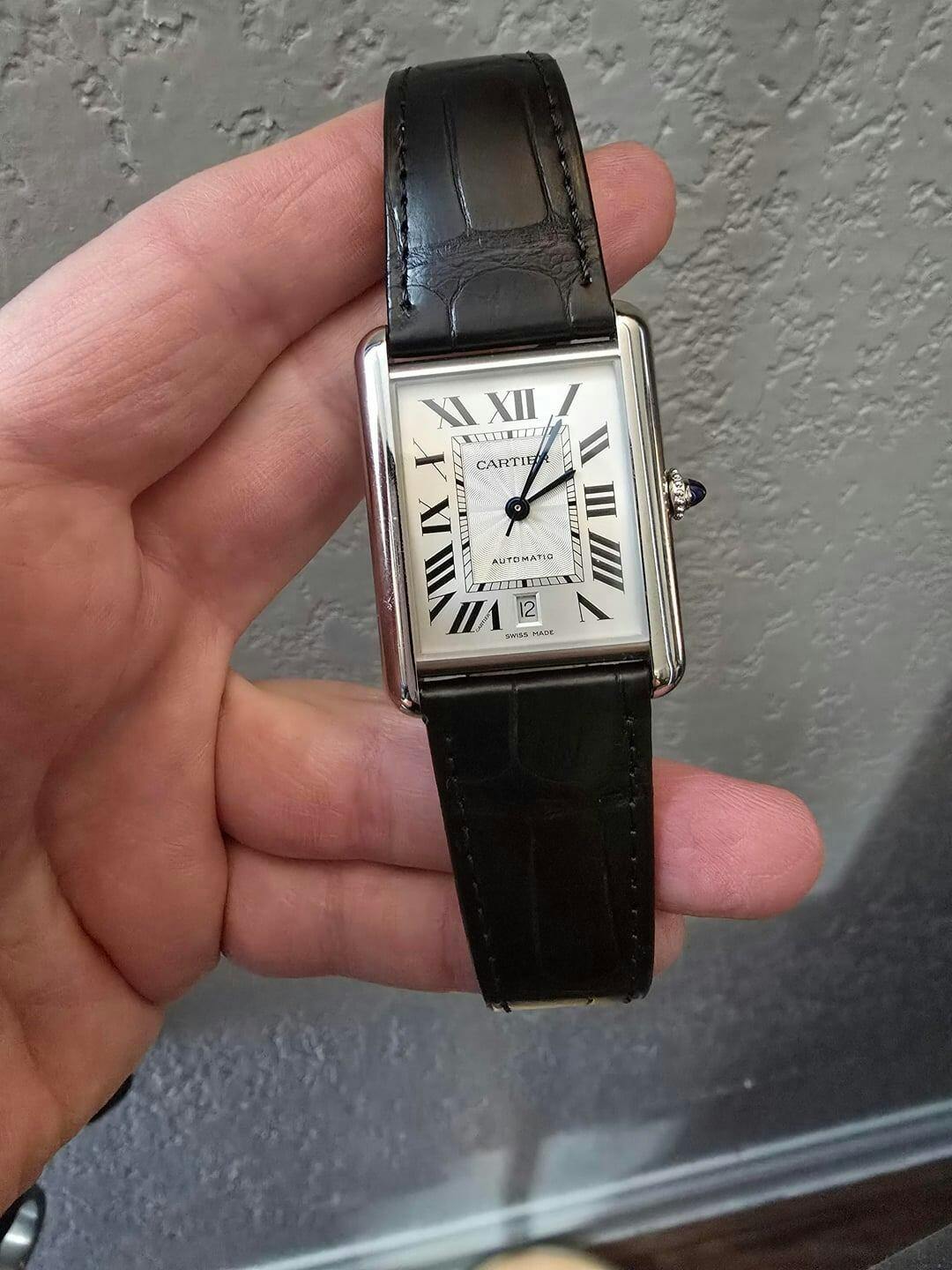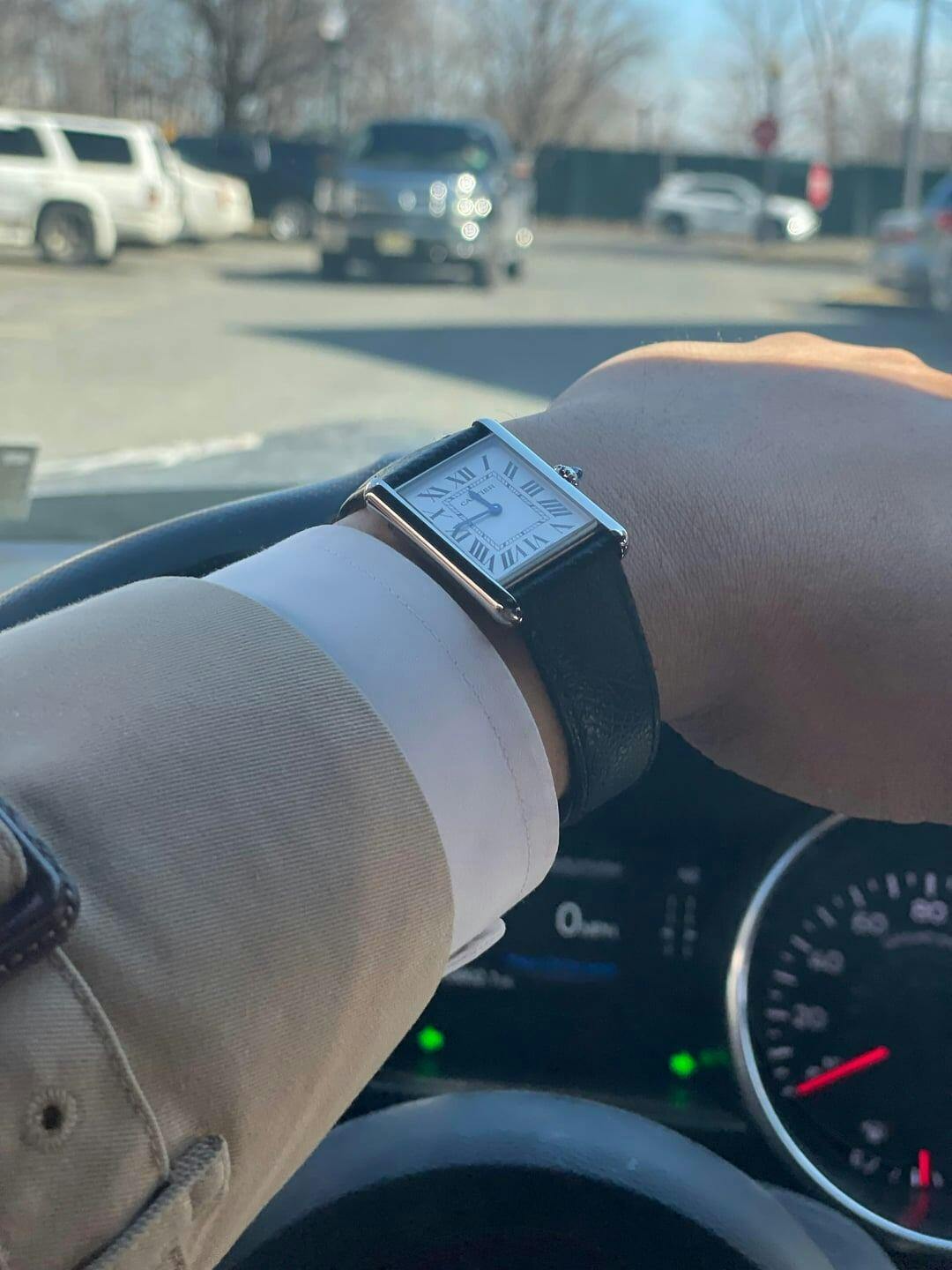 Tank Steel – White Dial Leather Strap Cartier Type