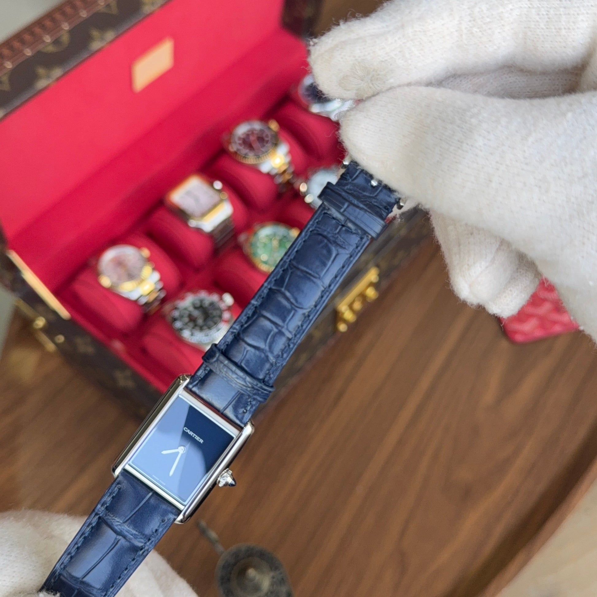 Tank Steel – Blue Minimal Dial Leather Strap Type Cartier