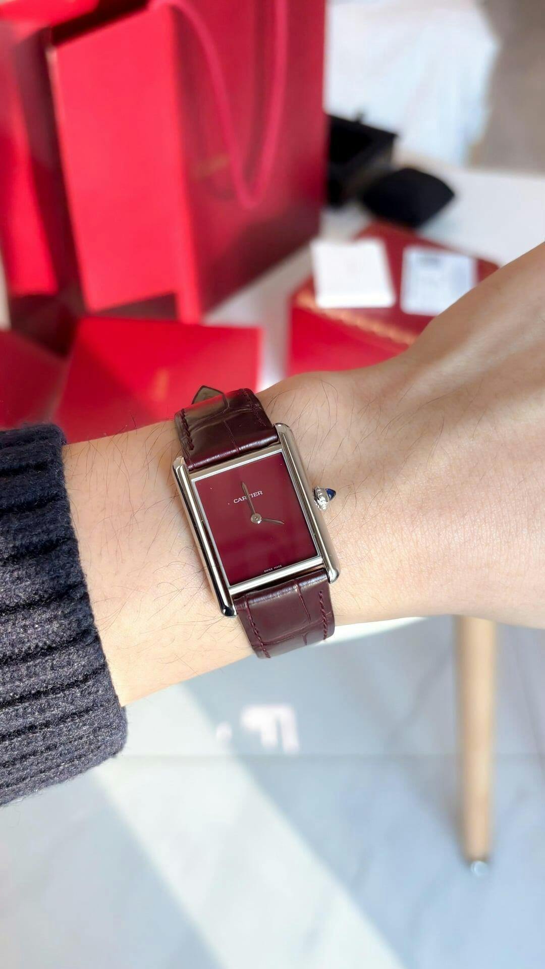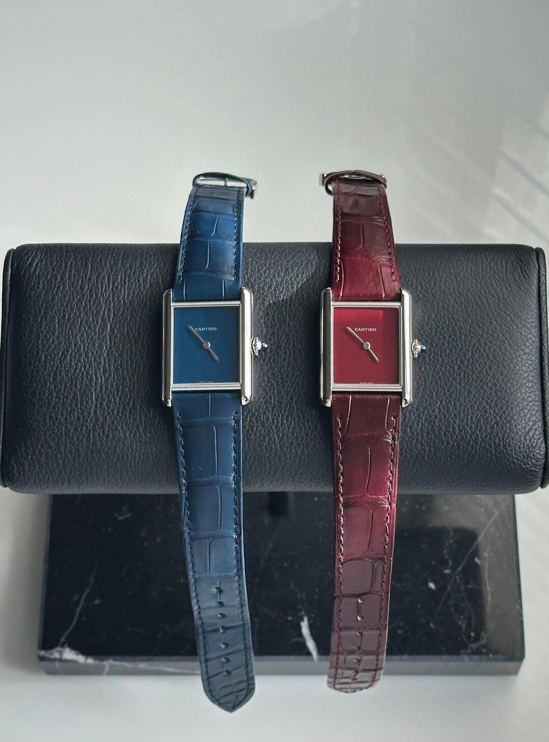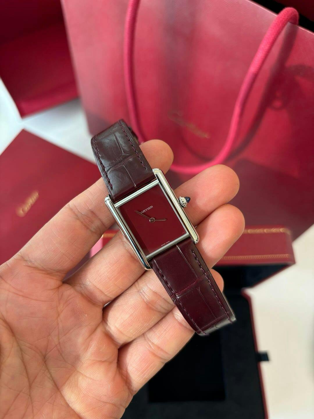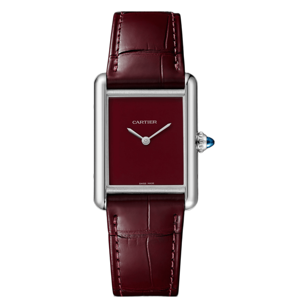 Tank Steel – Red Minimal Dial Leather Strap Type Cartier
