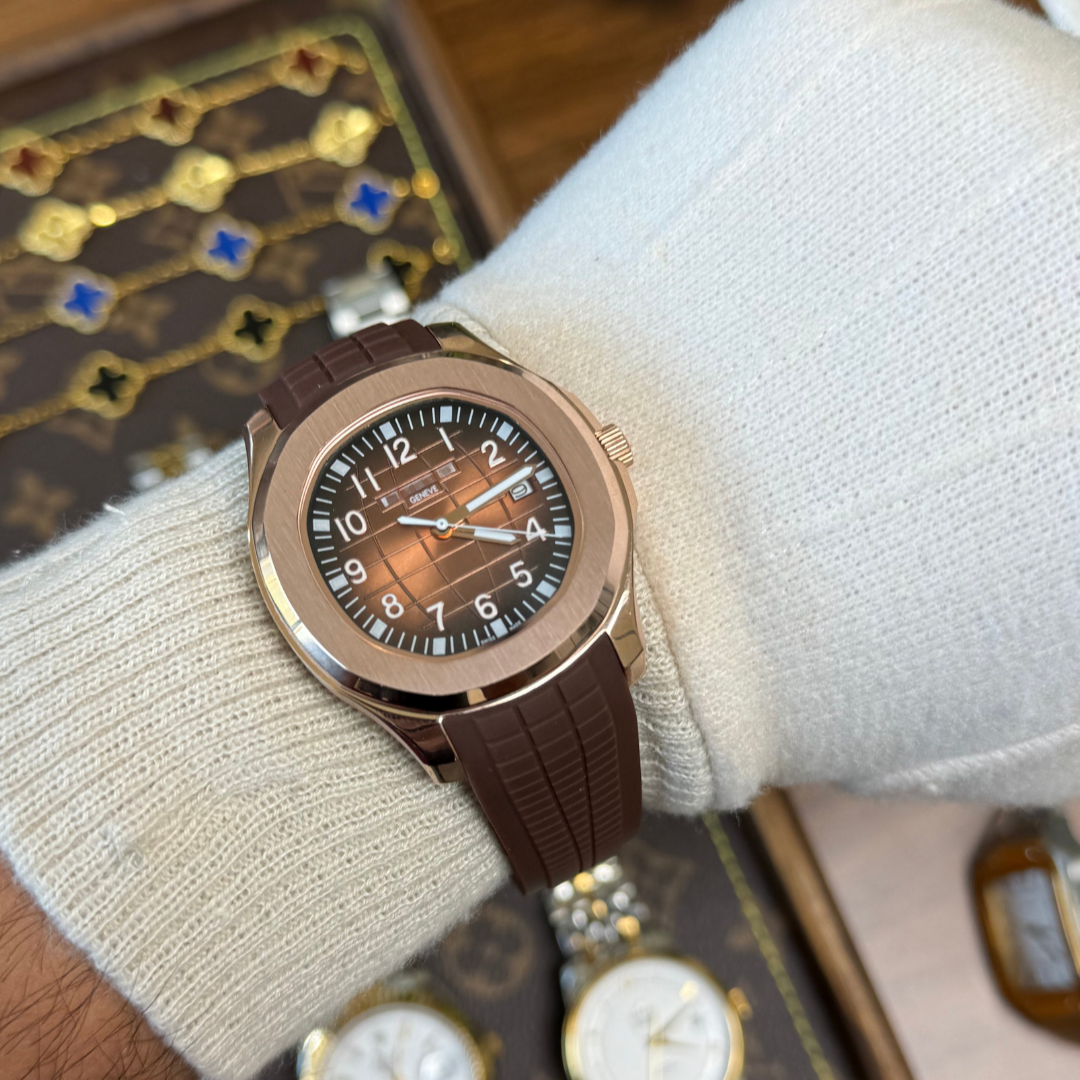 Aquanaut Rose Gold – Coffee Dial Rubber Strap